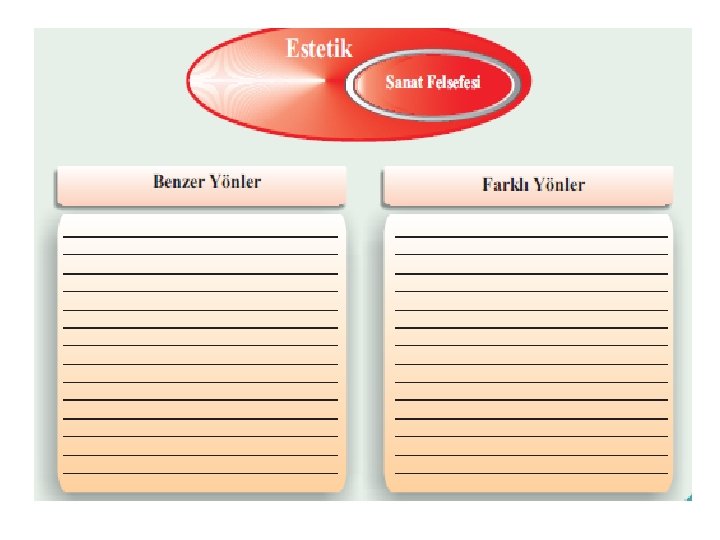Alıştırmalar: 1. Estetik sözcüğünü ilk kez 18. yy. da Alman düşünürü………………kullanmıştır. 2. Sadece sanattaki güzel ile…………, bütün alanlardaki güzel ilede……. . . ilgilenir. 3. ………………. ; büyük, ulu, ulvi, hayranlık uyandıran ulaşılması zor olan şeydir. 4. Sanatı yaratma olarak gören yaklaşımın en önemli temsilcisi………… 5. Platon için güzellik…………