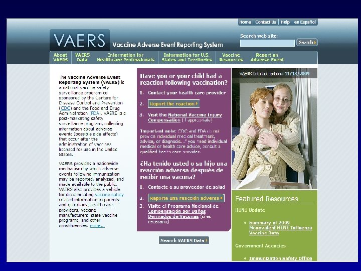 Vaccine Adverse Events Reporting System (VAERS) u u National post-licensure safety surveillance system jointly operated by CDC and FDA Spontaneous reporting system in existence since 1990 – reports submitted by clinicians, manufacturers, patients/parents and others u Subject to well-described limitations of passive surveillance