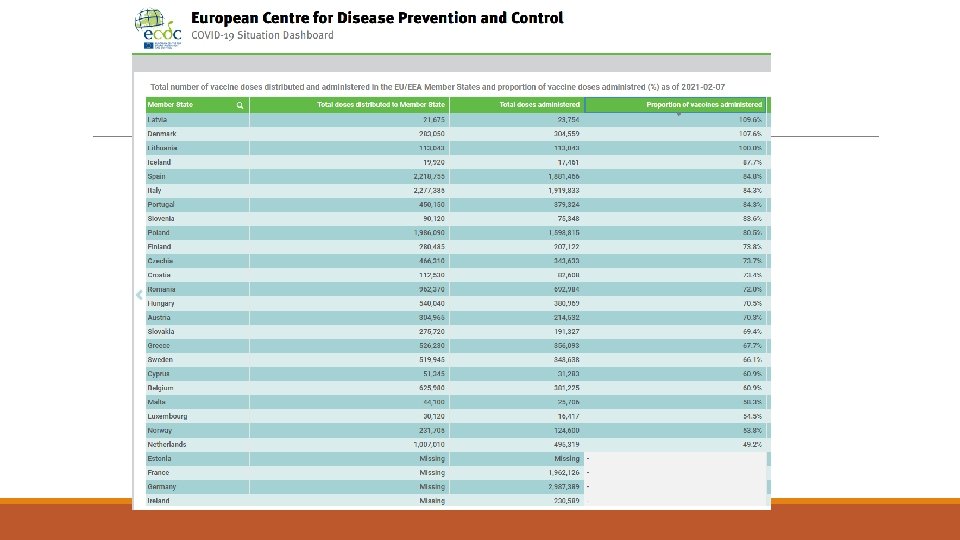 Būtiskākie notikumi pasulē §Janssen – uzsākts reģistrācijas process. §Novovas – pirms reģistrācijas process - rolling review uzsākts 3. februāri §Cure. Vax – rolling review uzsāks aptuveni februāra vidū. §AZ § COVID vaccine: One dose of Astra. Zeneca jab cuts transmission by two thirds, says latest analysis § Switzerland seeks more data on Oxford-Astra. Zeneca vaccine § South Africa has put a temporary hold on the use of the Astra. Zeneca in its vaccination programme after data showed it gave minimal protection against mild to moderate infection caused by the country’s new strain. § WHO: While the small study suggested the vaccine did not prevent mild and moderate disease in a group of mostly young people, it did not look at whether the vaccine prevents severe disease, hospitalisation and deaths. This is the “primary job” of vaccines, said Dr Mike Ryan, the WHO’s emergencies chief.