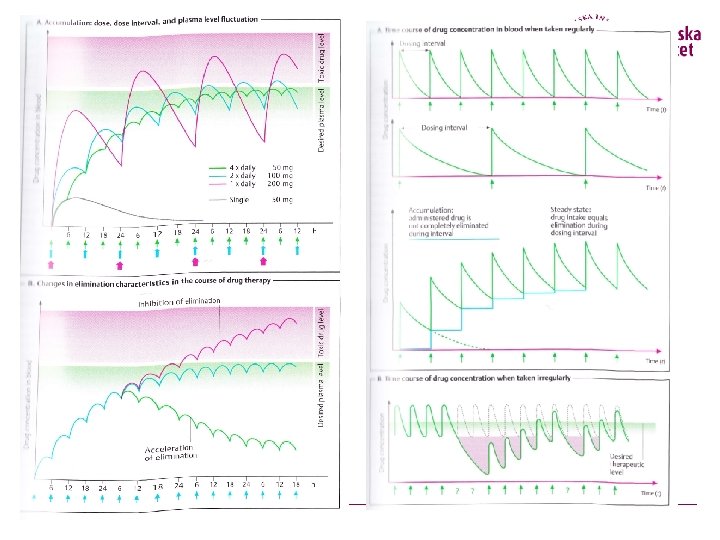 Farmakokinetiska begrepp (3) Halveringstid (t½) àDen tid det tar att halvera mängden läkemedel i kroppen àHög CL kort halveringstid àStor VD lång halveringstid 30 Rätt dos