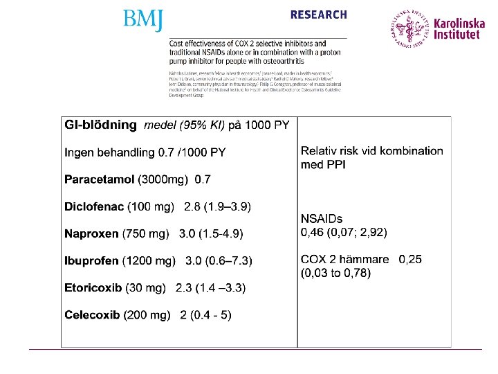 Risken för serious adverse events COX-2 inhib. vs NSAIDs Wright. CMAJ, 2002: 167 (10) 1131 -1137