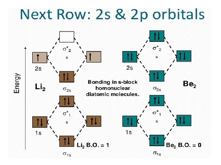 Molecular orbital configurations of homonuclear diatomics Bond orders, bond lengths and bond energies The bond orders from MO theory agree with Lewis