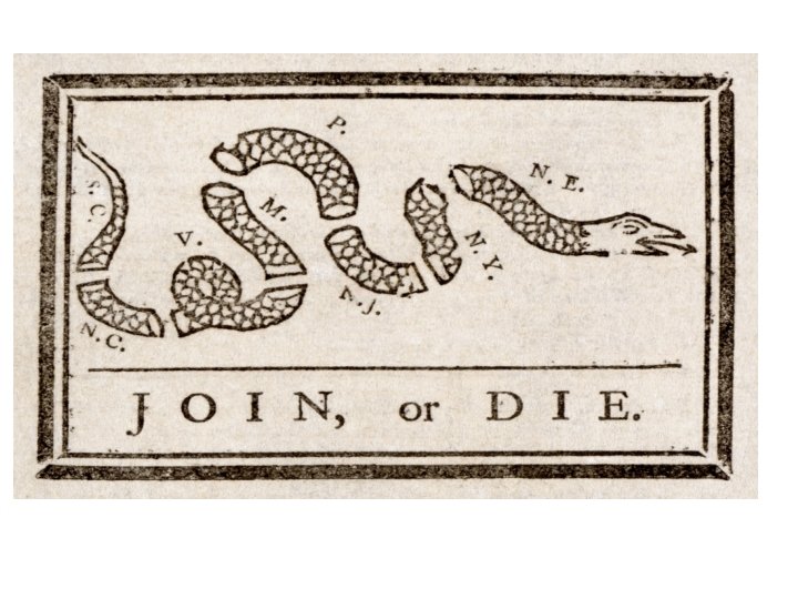 Join, or Die' is a well-known political cartoon, created by Benjamin Franklin and first published in his Pennsylvania Gazette on May 9, 1754. [1] The original publication by the Gazette is the earliest known pictorial representation of colonial union produced by a British colonist in America. [2] It is a woodcut showing a snake severed into eighths, with each segment labeled with the initials of a British American colony or region. New England was represented as one segment, rather than the four colonies it was at that time. In addition, Delaware and Georgia were omitted completely. Thus, it has 8 segments of snake rather than the traditional 13 colonies. [3] The cartoon appeared along with Franklin's editorial about the "disunited state" of the colonies, and helped make his point about the importance of colonial unity. During that era, there was a superstition that a snake which had been cut into pieces would come back to life if the pieces were put together before sunset The cartoon became a symbol of colonial freedom during the American Revolutionary War.