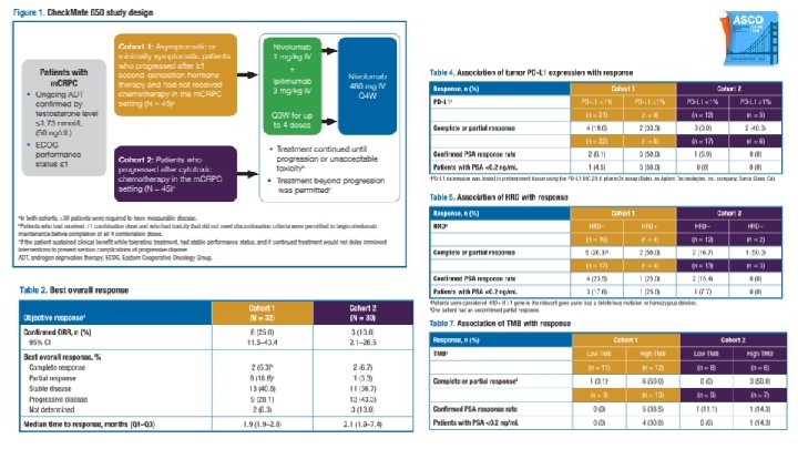 26% respuestas bioquímicas 20% respuestas radiológicas Fase 2 multi-cohorte • N= 70 pacientes, 22 ongoing • Tras progresión a abiraterona • Follow-up 8. 9 meses (6. 5 -13 meses) • Expresión de PDL 1 +30%
