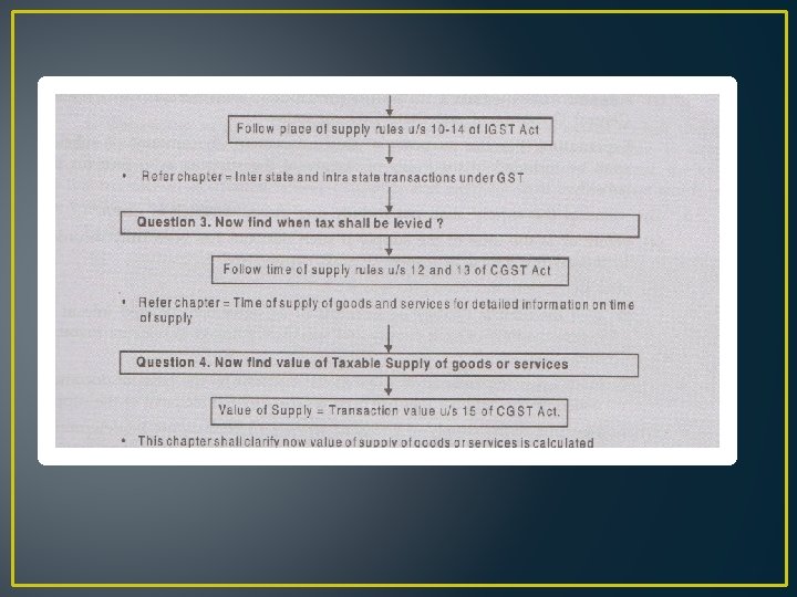 GST = Value of supply * Rate of GST/100 But before we learn how to calculate value of supply, we need to confirm few questions, explained below in the flow chart :