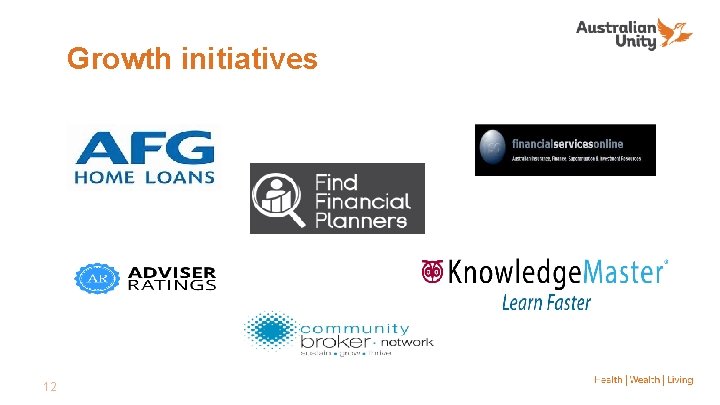 Advice business Overview 25 Advisers Customer focus Employed Advisers Clear and specific guidelines 140 Advisers 9 QLD 8 VIC 4 NSW 3 ACT 1 WA 87 Practices PFS ~$2. 5 b FUA ~$17 m Inforce Premium 5 9% Practice revenue Growth Based on Australian Unity 2018 Annual Report ~$33 m Inforce Premium 30 Limited Authority Accts ~$4. 3 b FUA