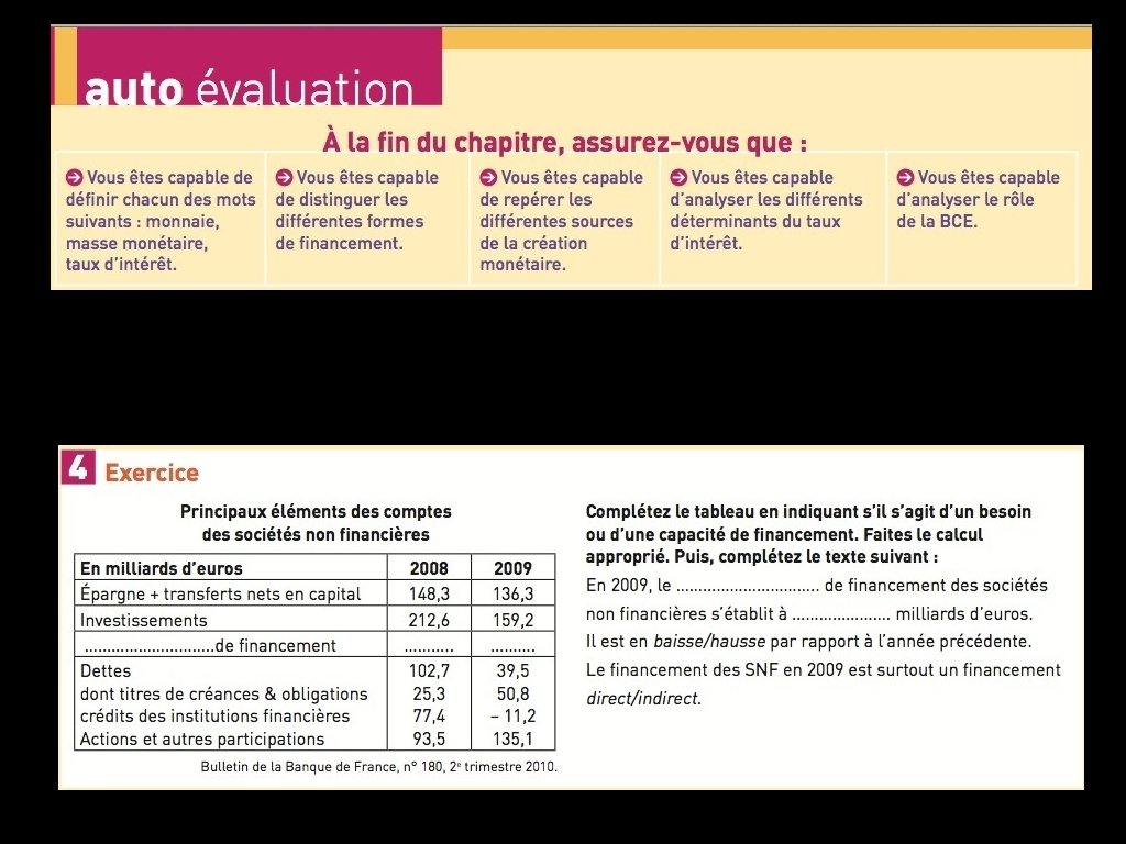 Texte à trou complétez le texte suivant en choisissant dans la liste de mots banque centrale (2 fois) - banques commerciales – marché monétaire. - réserves obligatoires - liquidités – taux directeur La création monétaire des banques commerciales ( dites aussi de second rang) est limitée par leurs besoins en liquidités ou en monnaie “banque centrale”. Elles en ont besoin pour fournir des billets à leurs clients mais surtout pour régler leurs dettes d’une banque à l’autre. Chaque banque a un compte auprès de la banque centrale (en France : la Banque de France, affiliée à la Banque Centrale Européenne). Celle-ci prête cette monnaie dont les banques ont besoin avec un taux d’intérêt (appelé taux directeur) Les besoins de liquidités sont aussi augmentés par les réserves obligatoires que les banques commerciales sont obligées de déposer auprès de la banque centrale en fonction des crédits qu’elles accordent. Au quotidien la banque centrale agit surtout par le biais du taux directeur En rendant plus ou moins aisé ou coûteux l’accès à cette monnaie « banque centrale » dont les banques commerciales ont besoin, la banque centrale limite ou facilite la création monétaire par les banques de second rang.