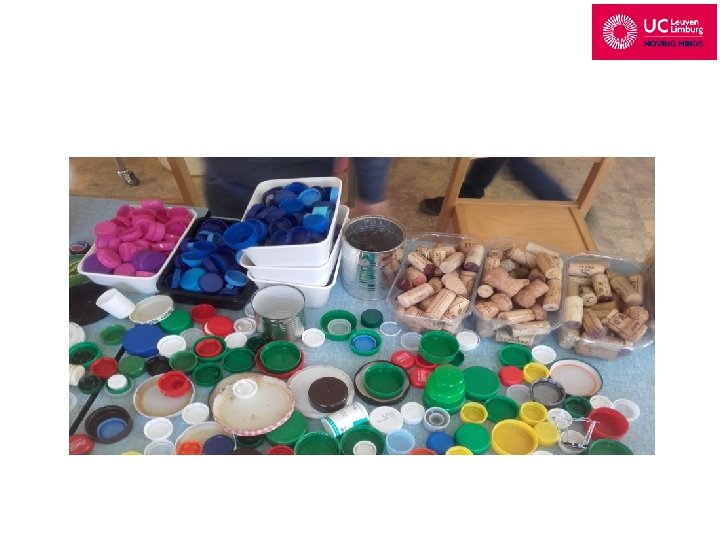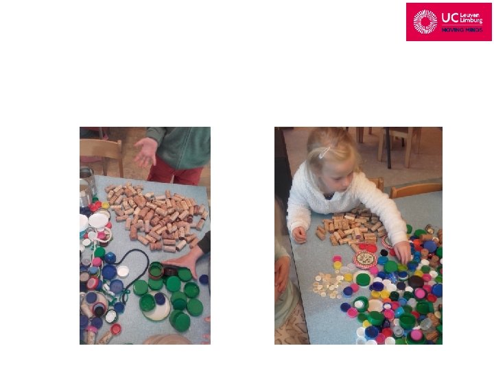 Kroonkurken, melkflesdoppen, touwtjes, kurken, kroonkurken, deksels en knopen bij elkaar: wat doen kleuters ermee?