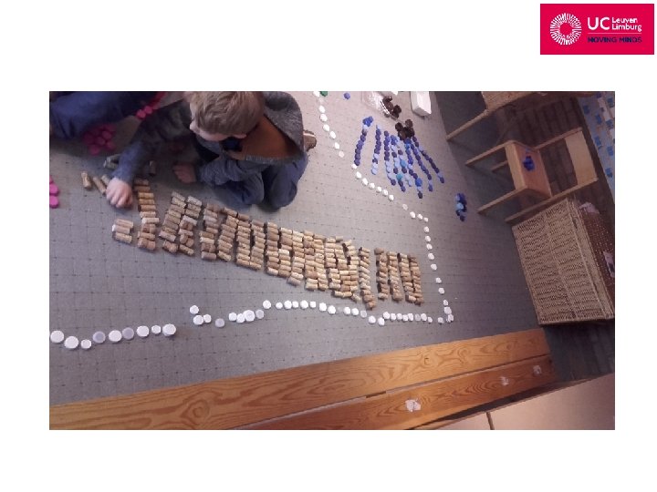 Ik besluit om wat artikels rond wiskunde in de kleuterschool door te nemen en zo een praktijkvoorbeeld te gaan bedenken om mee te nemen naar de studenten, vanuit voorgaande bevindingen. Vanuit de artikels ‘Een goede voorbereiding op rekenen en wiskunde’ ( Poland, 2009) en ‘ Werken met de rekenkist’ ( Zwart, 2004) kom ik tot volgende aandachtspunten: -kleuters moeten de sprong van concreet naar abstract denken maken bij wiskunde: het grootste struikelblok -vaak wordt de abstracte vorm té snel aangeboden -als je vertrekt vanuit ervaringen is het sneller verankerd -geef kleuters de kans tot leren schematiseren -kleuters willen heel veel herhalen -zoek naar mogelijkheden om structuren aan te brengen in de rekenervaringen van kleuters zonder dat rekenen abstract wordt. Ik besluit om iets concreets op te zetten in mijn klas en dat ook zelf te gaan uitproberen. Na wat zoeken krijg ik een tip van mijn kritische vriend : een blog over ‘ loose parts’…. dit is wat ik zocht. Na enkele weken hamsteren heb ik de nodige materialen verzameld, en met volgend schema in mijn achterhoofd start ik dit project op in mijn eigen kleuterklas, tijdens het belangstellingscentrum “ afval, wat doen we ermee? ”