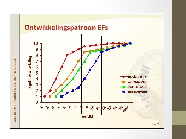 Executieve functies… wat zijn dat precies? • Het zijn de functies in je brein die het mogelijk maken dat je rationele beslissingen neemt, impulsen beheerst en kunt focussen op wat belangrijk is • Wat heb je nodig om dit op te lossen? • Uit Slim maar…. auter Peg Dawson