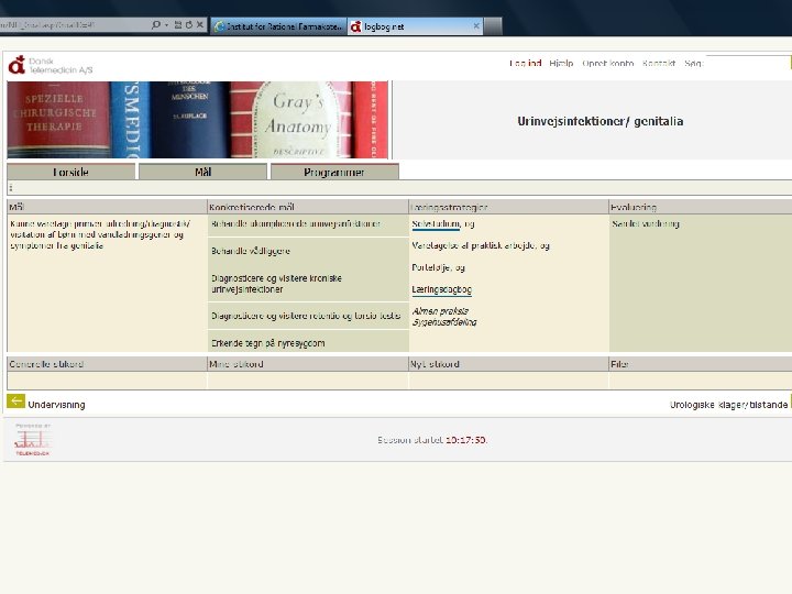 Patient 7. n n n 38 -årig ♀ lærer på frisørskole ses på besøg. Alment dårlig, tmp. 38, 9 rektalt, smerter lokaliseret til flanker og over symfysen. Supplerende spørgsmål? n Urin ildelugtende og plumret. Objektiv undersøgelse? n Varm og svedende. Ømhed over symfysen og nyreloger.