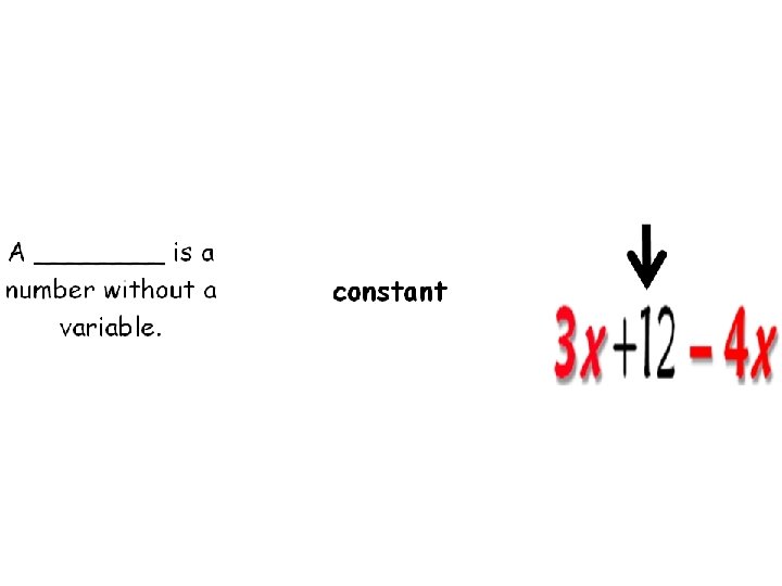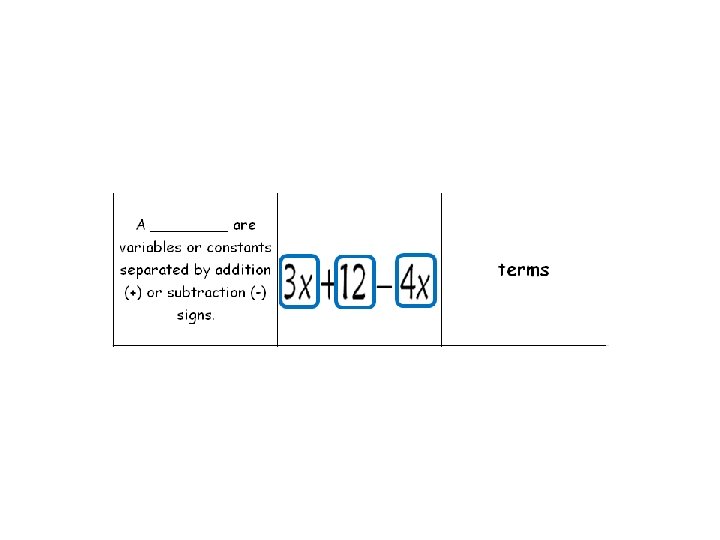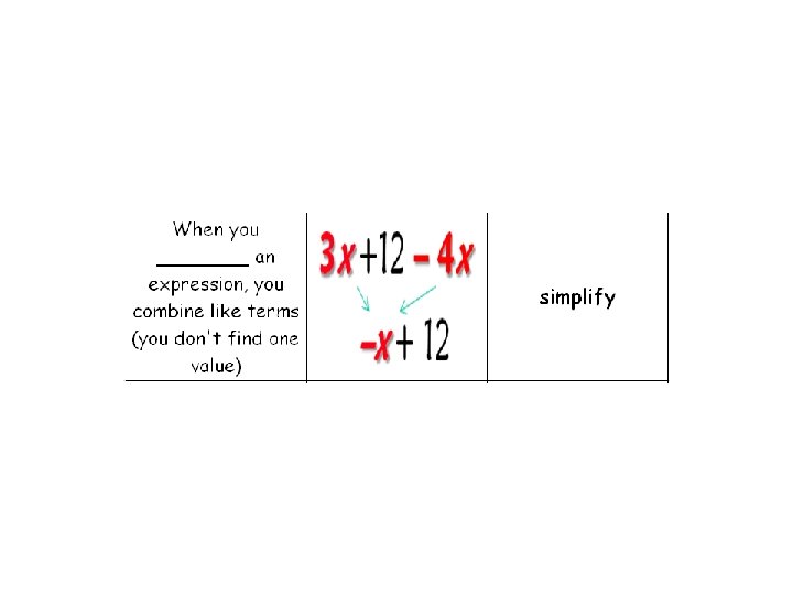 Simplifying Variable Expressions by Adding or Subtracting You can only add or subtract LIKE TERMS. – 7 a – 9 + 11 a – 3 terms with the same variable. or numbers without variables (constants) (like – 7 a and +11 a) 4 a – 12 (like – 9 and – 3) Circle the variable terms, . . . and box up the constants Add the like terms. 17 a +1 a 18 a 4. Remember, a = 1 a so, put a “ 1” in front of the a 14 x + 7 b – 9 x + 19 – 11 b – 21 2. – 10 – 7 y + 6 y – 3 – 1 y 5. 13 + 2(8 – g) 13 + 16 + 2 g – 4 b + 5 x – 2 29 + 2 g 3. 12 b + 5 – 12 b . . . or, get rid of the “ 1” Use Distributive Property to get rid of the parenthesis. outer times first, then outer times second 0 – 10 6. . or, get rid of the “ 0” 13 +(– 19) – 6(n + 1) – 10 n 13 +(– 19) – 6 n – 6 – 10 n – 12 – 16 n