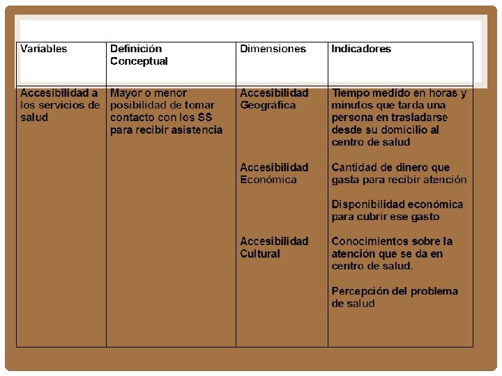 • El marco teórico define y describe las variables, además probablemente aporte otras: • Ingreso económico de los padres, tipo de vivienda, servicios básicos, etc. • profesión de los padres, disponibilidad de textos de consulta, lugar para estudiar.
