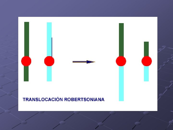 Translocaciones • Intercambio entre segmento de cromosomas • Dentro del mismo cromosoma: Intracromosómicas • Entre cromosomas no homólogos: intercromosómicas • Fisión céntrica • Fusión céntrica o Robertsoniana