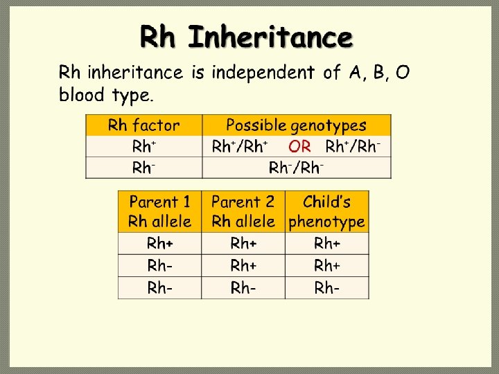 Practice… �On page 195 of your text: • read answer the following questions: • Snap Dragons: Show F 1 and F 2 generations from red and white flower cross, 4 x 4 punnett square. • Blood Types… � 1) List the 3 blood type alleles? � 2) List the 4 blood types and give their genotypes � 3) Which blood types demonstrate dominant and codominate traits? �Prepare for CSI Case….