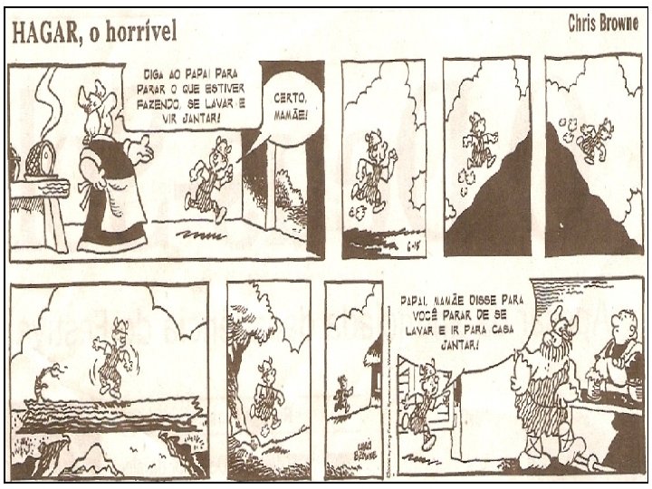 � Assim, a comunicação ocorre quando interagimos com outras pessoas utilizando linguagem. � Para se comunicar, as personagens da tira não utilizam apenas a linguagem verbal, isto é, as palavras. Elas também gesticulam, se movimentam, fazem expressões corporais e faciais. Tudo isso – palavras, gestos, movimentos, expressões corporais e faciais – é linguagem. � Linguagem é um processo comunicativo pelo qual as pessoas interagem entre si. Além da linguagem verbal, cuja unidade básica é a palavra (falada ou escrita), existem também as linguagens não verbais, como a música, a dança, a mímica, a pintura, a fotografia, a escultura etc. Há ainda, as linguagens mistas, como as histórias em quadrinhos, o cinema, o teatro e os programas de TV, que podem reunir diferentes linguagens, como o desenho, a palavra, o