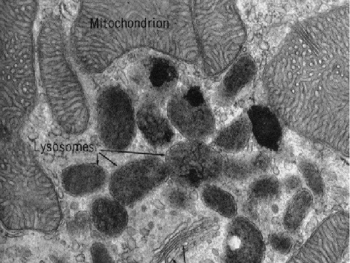 4. Lysosomes (p. 42) • Description: Ø Sacs membraneux (simple membrane) Ø Contiennent un mélange d’enzymes digestives • Fonctions: L’estomac de la cellule !!! ØDigestion intracellulaire des substances nutritives ØDigestion des substances étrangères (bactéries) ØDigestion des composantes endommagées de la cellule ØAutolyse : Autodigestion de la cellule