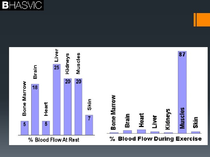 Vascular shunting. What percentage of blood is used in the muscles while we are at rest? 20% Have a look at page 85 to discover how this changes when we take part in high intensity exercise.