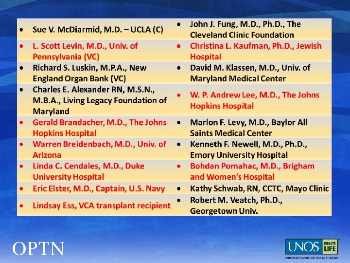 VCA and the OPTN § The VCA community’s position was that oversight should fall under the OPTN § 42 CFR Part 121 Final Rule: July 2013