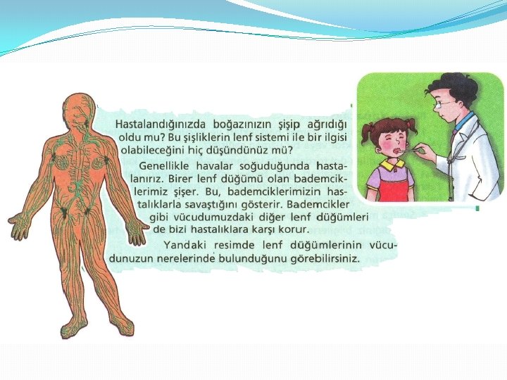 5. Lenf Dolaşımı Dolaşım sisteminde kan dolaşımına yardımcı olan ve lenf dolaşımı adı verilen başka bir dolaşım sistemi daha vardır. Bu sistem, lenf damarları ve lenf düğümlerinden oluşur. Lenf, lenf damarları içindeki akıcı bir maddedir. Lenf damarları, kandan hücreler arasına sızan maddeleri toplayarak yeniden kana kazandırır. Lenf düğümleri ise vücudumuzu hastalıklara karşı korur.