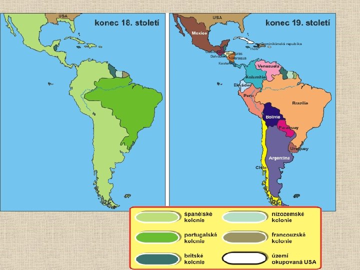 • 1816 - 1826 - vlna národně osvobozeneckých hnutí ve španělských koloniích v Jižní Americe • Nejvýznamnější postava. Simon Bolívar • Z bývalých španělských a portugalských kolonií vzniklo 20 států (nevytvořily unii jako na severu USA)