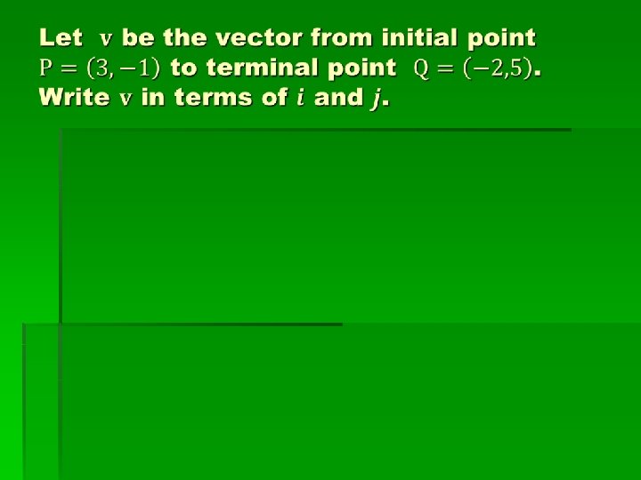 Addition Properties § Vector addition is commutative & associative § v + 0 = 0 + v = v § v + (-v) = 0 § v – w = v + (-w)