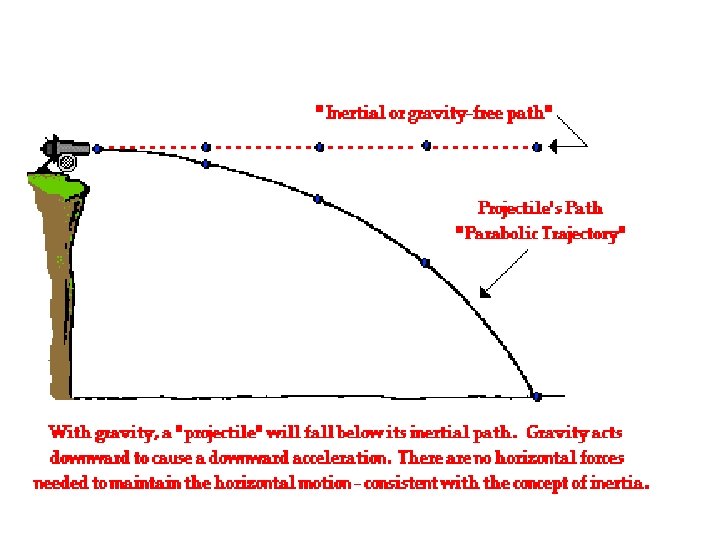 Projectile Motion • A projectile launched horizontally has no initial vertical velocity. • Its vertical motion is like that of a dropped object. • Its only acceleration is due to gravity. • Therefore, it has a constant horizontal speed. • Its horizontal acceleration is zero. • Its vertical speed increases as it falls. • Its vertical acceleration is -9. 80 m/s 2.