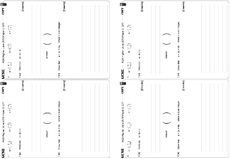 Vectors – Substitution – Higher – GCSE Questions – AQA These questions are the same format as previous GCSE exams. COPY means they use the exact same numbers as the original GCSE question. Otherwise, they are clone questions using different numbers. The worksheets are provided in 2 sizes.