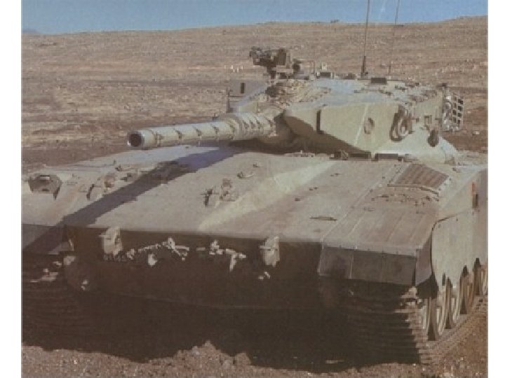 Merkava Main Battle Tank • Crew 4 • Armamament 105 mm main gun 1 x 7. 62 mm machine gun - coaxial 2 x 7. 62 mm machine gun - anti aircraft 1 x 60 mm mortar • Ammunition 62 x 105 mm 10, 000 x 7. 62 mm • Length 7. 45 m Width 3. 7 m Height 2. 64 m Weight 63, 000 kg • Engine Teledyne Continental AVDS-1790 -6 A V-12 diesel developing 900 hp • Max Road Speed 46 kph • Gradient 70% Side Slope 38% • Fuel Capacity 900 lit Max Range 400 km • Fording 1. 38 m 2 m w/prep Verticle Obstacle 0. 95 m Trench 3 m • Armor Classified • NBC System Yes • Night Vision Equipment Yes