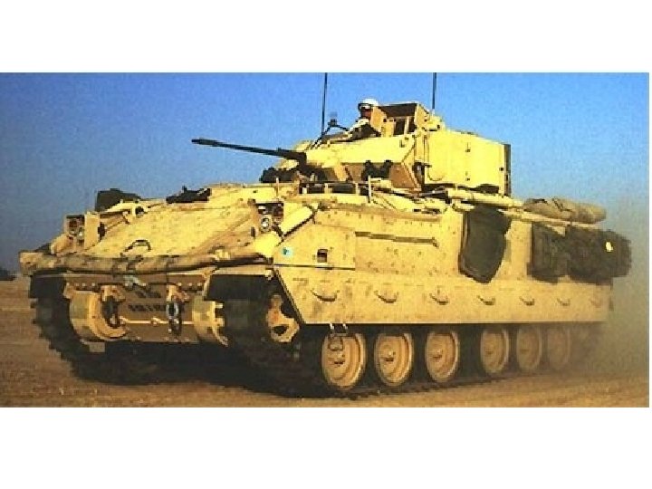 M 2 / M 3 Bradley Fighting Vehicle • Crew 3+6 • Armamament 1 x 25 mm 1 x 7. 62 mm machine gun - coaxial 2 x TOW ATGW launcher 2 x 4 smoke dischargers • Ammunition 900 x 25 mm 1, 340 x 7. 62 mm 7 x TOW ATGW • Length 6. 453 m Width 3. 2 m Height 2. 972 m Weight 22, 590 kg • Engine Cummins VTA-903 T turbocharged 8 cylinder diesel developing 500 hp at 2, 600 rpm • Max Road Speed 66 kmh • Gradient 60% Side Slope 40% • Fuel Capacity 662 lit Max Range 483 km • Fording amphibious w/ prep Verticle Obstacle 0. 914 m Trench 2. 54 m • Armor Classified • NBC System Yes • Night Vision Equipment Yes - passive