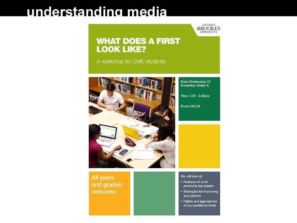 Case Study guidelines Module handbook (on Moodle): Section 8. 3: Description Section 8. 4: Assessment criteria Submission deadline: Monday 8 th December, 1 pm (week 12) Paper submission via a post-box (outside the refectory, Harcourt Hill Campus) Electronic submission via Turnitin (Understanding Media Moodle site)