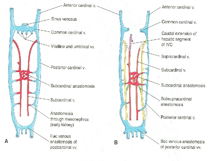 Posterior Cardinal Veins Ø The posterior cardinal veins develop primarily as the vessels of the mesonephroi and largely disappear with these transitory kidneys Ø The only adult derivatives of the posterior cardinal veins are the root of the azygos vein and the common iliac veins