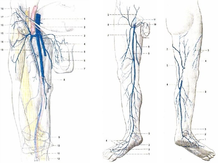 V. SAPHENA MAGNA - v. saphena accessoria - v. epigastrica spf. - v. circumflexa ilium spf. - vv. pudendae ext. vv. perforantes