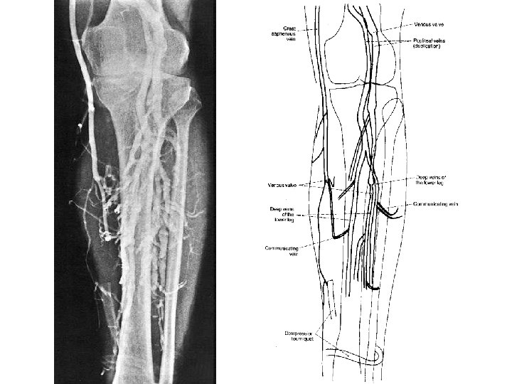 PHLEBOGRAPHY (VENOGRAPHY) Venous thrombosis surrounded by contrast, the so-called ‘tram-track’ sign (arrows)
