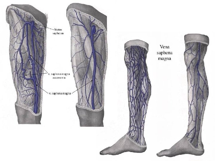 Veins of lower limb • superficial system – compartimentum saphenum • deep system - accompany arteries - doubled up to fossa poplitea - frequent connections around artery - frequent valves • systema venosum laterale (Albanesei)