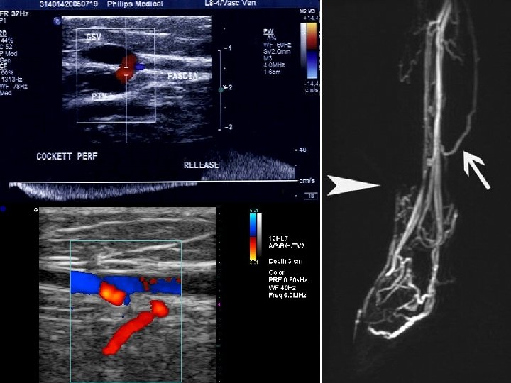 Venae perforantes • simple, double or multiple • run with small artery and cutaneous nerve (Staubesand‘s triad) • 6 groups: foot, ankle, leg, knee, thigh, buttocks • eponyms: Cockett, Boyd, Dodd • e. g. : venae perforantes cruris posteriores tibiales = Cockett‘s perforators – interconnect v. s. m. accessoria posterior and venae tibiales posteriores – 18. 5, 13. 5 a 7 cm proximal to sole 4 -mm tibial perforator