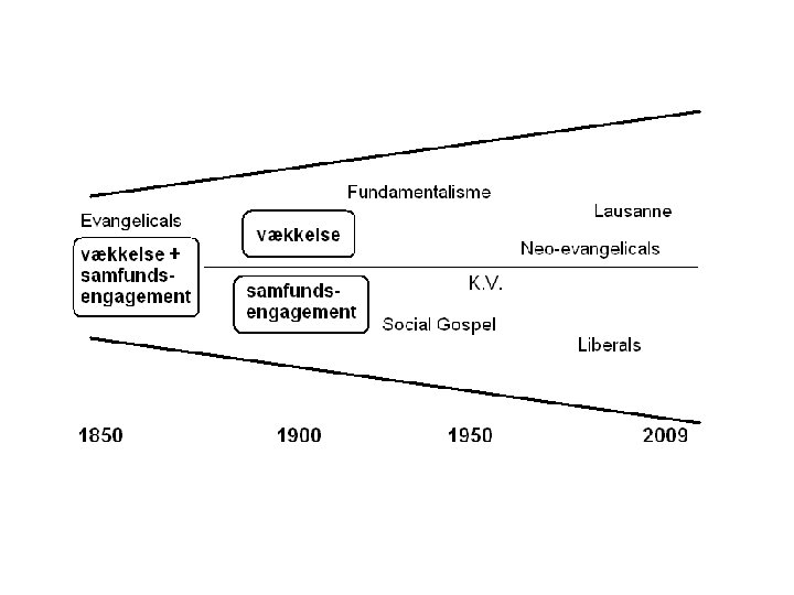 Vejen til Lausanne 1974 • • Tværkirkelige vækkelser op til 1905 Edinburgh-konferencen 1910 Den dobbelte følge af Edinburgh Den teologiske spaltning i USA (først!) Missionsrådet i KV 1961 Den økumeniske udvikling 1961 -1974 Evangelikal modstand