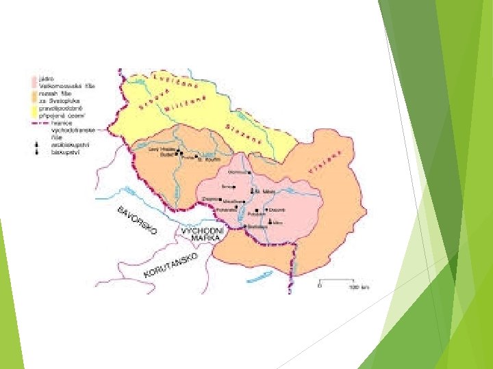 Svatopluk (871 – 894) útoky Franků vydal svého strýce Rastislava připojil Čechy – rozkvět říše křesťanství – Bořivoj přijal křest (i Ludmila)