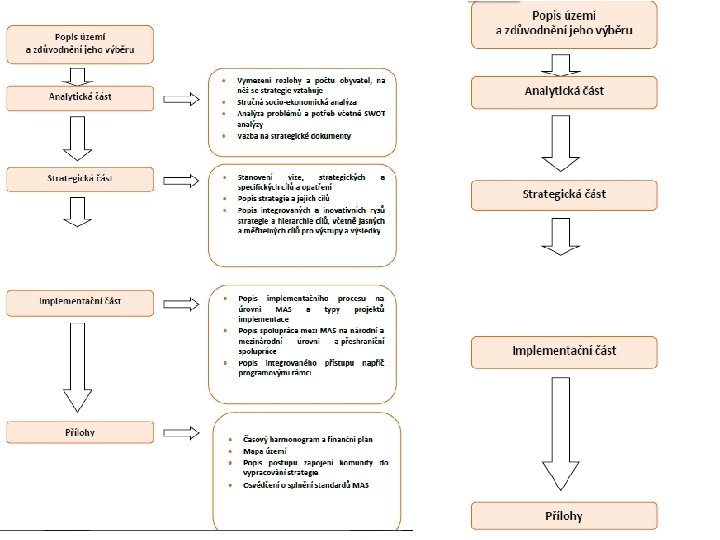 Implementační část • Popis implementačního procesu na úrovni MAS a typy projektů implementace • Popis spolupráce mezi MAS na národní a mezinárodní úrovni a přeshraniční spolupráce • Popis integrovaného přístupu napříč programovými rámci