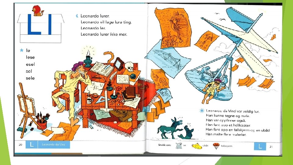Leseinnlæringen ► Aktiviserer forkunnskaper: - ved å se på bilder og assosiere fritt rundt tekstinnhold. ► Korlesing: - Lærer modellerer, fokuserer på leseretning og lesefinger. Holder lydene lenge, elevene gjentar.