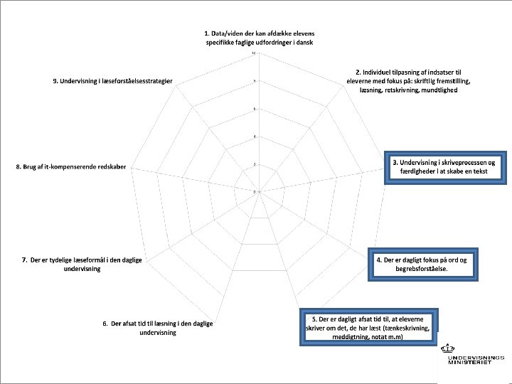 Indsatser i forhold til problematikker, som tests/data peger på: - data sat i samspil med danskfaglige kompetencer, så der sikres progression/fagligt løft hos eleven