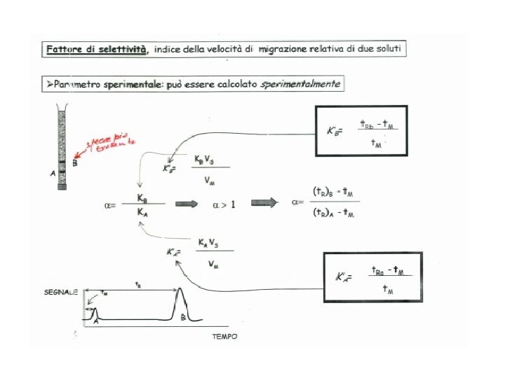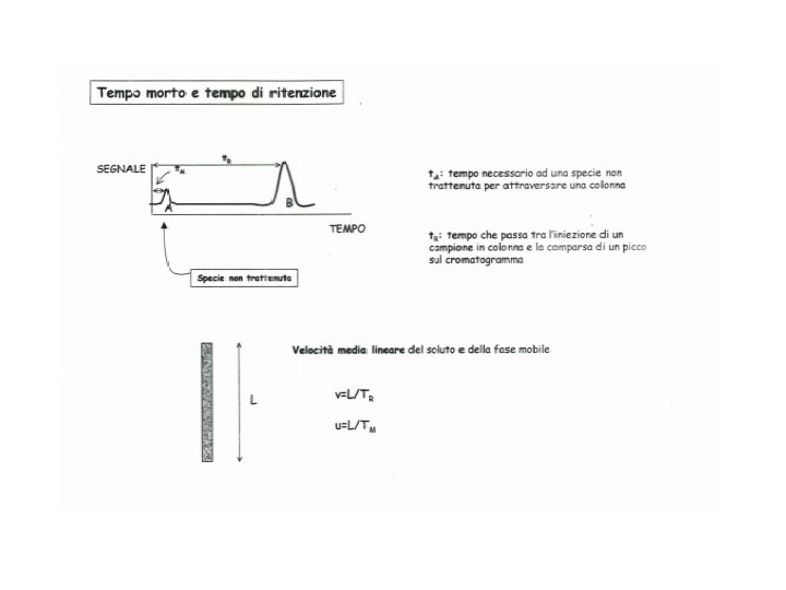 v=L/TR u=L/TM In che condizione abbiamo v=u ? La velocità di migrazione del soluto è espressa in funzione del suo rapporto di ripartizione K e in funzione dei volumi di fase stazionaria e fase mobile