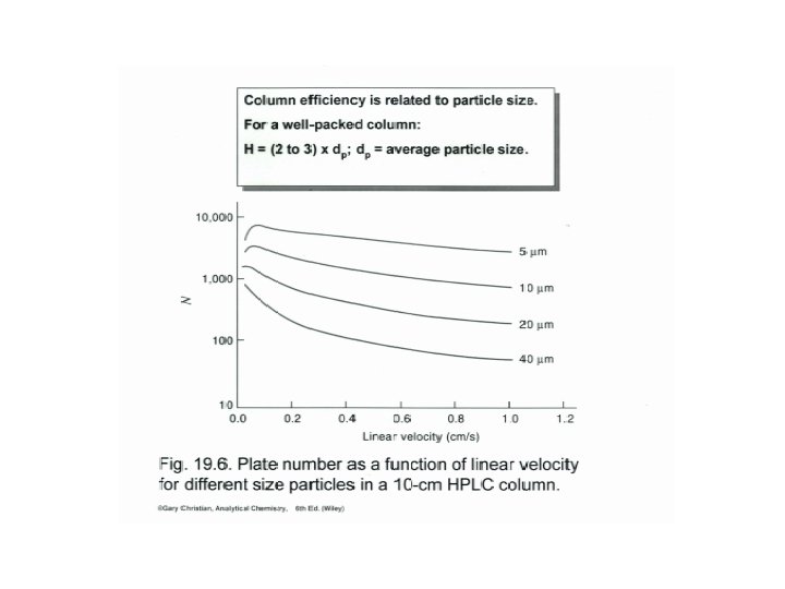 Variabili che influenzano l’efficienza della colonna • Velocità lineare della fase mobile • Coefficiente di diffusione nella fase stazionaria • Fattore di capacità • Diametro delle particelle di impaccamento • Spessore del ricoprimento liquido della fase stazionaria