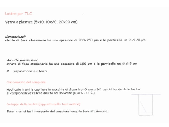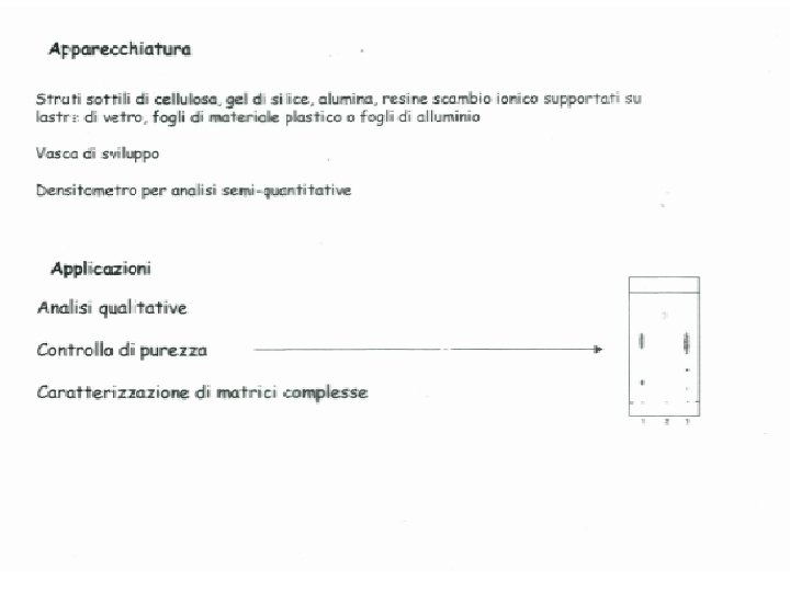 Le principali tecniche cromatografiche • TLC (cromatografia su strato sottile) • HPLC (cromatografia liquida ad alte prestazioni) • GC (Gascromatografia)