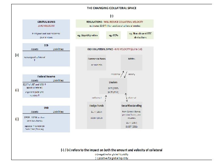 The changing collateral space— from “old” to the “new” era In the “new” collateral space, the increasing role of central banks regulations, and collateral custodians is significantly changing the collateral landscape. n (i) unconventional monetary policies pursued by central banks n (ii) regulatory demands stemming from Basel III, Dodd Frank, EMIR etc that will entail builder collateral buffers at banks (LCR), CCPs etc; n (iii) collateral custodians who are striving to connect with the central security depositories (CSDs) to break out of silo(s). n (iv) supply of new collateral (assume D/GDP ratio does not increase significantly in developed countries).