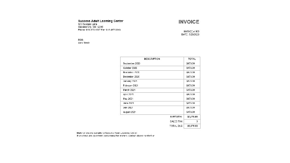 Filling out vendor form: Second Section Success Adult Learning Center 12 -3456789 123 Success Lane Success Adult Learning Center Success City, OK 12345 • If you are unsure of what to enter in the Vendor FEIN or SS# please contact the vendor • Please be aware the payment will be sent to the address on the vendor’s W-9 so if the vendor is a national organization, please include the client’s account number with that vendor to help direct payment