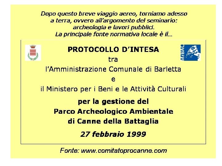 12/05/2011. CANNE DELLA BATTAGLIA – CITTADELLA OFF LIMITS DOPO L’ISPEZIONE DEL MINISTERO: CHIUSE AL PUBBLICO IL GIRO DELLE FORTIFICAZIONI E LA TOMBA DI SAN RUGGIERO. 25/05/2011. CANNE DELLA BATTAGLIA - DAL GOVERNO I SOLDI PER IL MURO: DOPO 8 ANNI IL MINISTERO STANZIA 25. 000 EURO PER PREVENIRE ALTRI CROLLI 26/05/2011. CANNE DELLA BATTAGLIA - AGGIUDICATI DAL COMUNE I LAVORI PER IL COMPLETAMENTO DEL NUOVO ANTIQUARIUM (450. 000 EURO) 16/06/2011. CANNE DELLA BATTAGLIA - UN TAVOLO ISTITUZIONALE PER IL RILANCIO DEL SITO: DIREZIONE BENI CULTURALI, REGIONE, COMUNE DI BARLETTA, PROVINCIA BT. E TUTTI GLI ALTRI SOGGETTI, IL COMITATO, LE ASSOCIAZIONI? 18/06/2011. CANNE DELLA BATTAGLIA - DOPO L'INCONTRO A BARI: SINDACO MAFFEI, PERCHE' ESCLUDI LE ASSOCIAZIONI SULLE COSE DA FARE? ED A PRIMAPAGINA BAT UN GRAZIE PER FARE GIUSTA INFORMAZIONE SUI NOSTRI BENI CULTURALI.