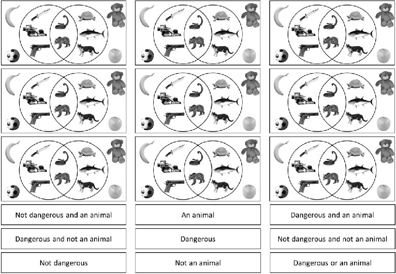 An animal Dangerous Not dangerous Not an animal Dangerous and an animal Dangerous or an animal Dangerous and not an animal Not dangerous and not an animal