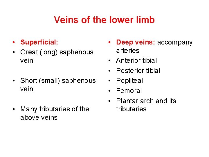 Veins of the lower limb • Divided in to two groups • Superficial veins • Deep veins