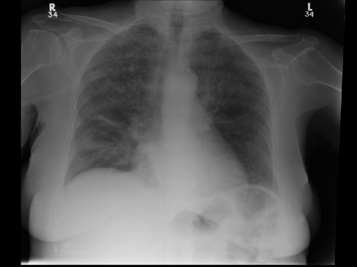 Case 1 (cont) • OE: w w HR 110 RR 24 BP 90/50 SPO 2 90% on 50%FM T 38. 5 CVS N hs; JVP 4 -5 cm ASA Chest: Fine crackles over bases, long expiratory time • Inv: w CBC: 98 11. 7 318 w Lytes 138 104 3. 5 26 w ABG: 7. 43 34 65 23 on Fi. O 2 0. 5